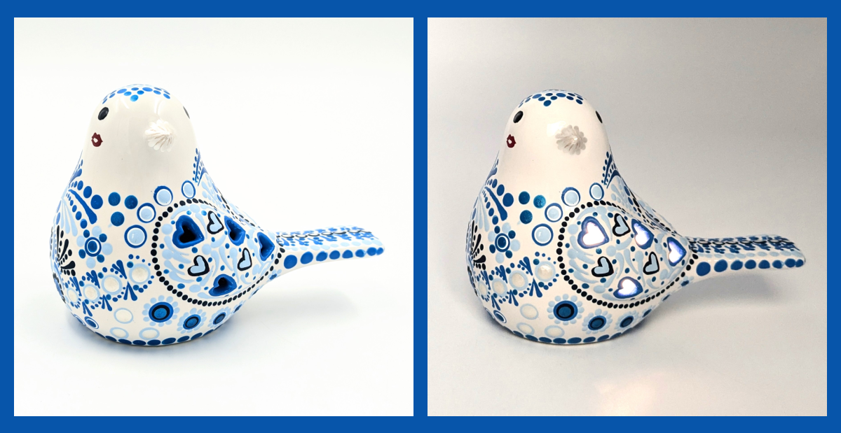 A hand-painted dot mandala LED ceramic bird that delivers a gentle, color-rich glow – art you can switch on for instant atmosphere.