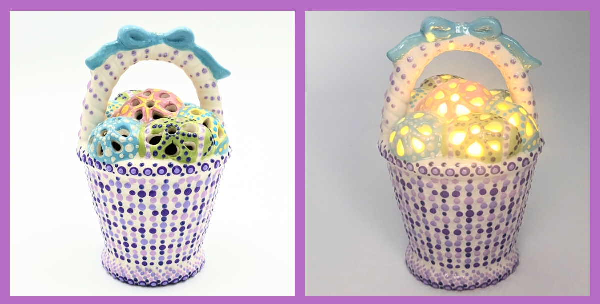 A hand-painted dot mandala LED Easter basket that delivers a gentle, color-rich glow – art you can switch on for instant atmosphere.
