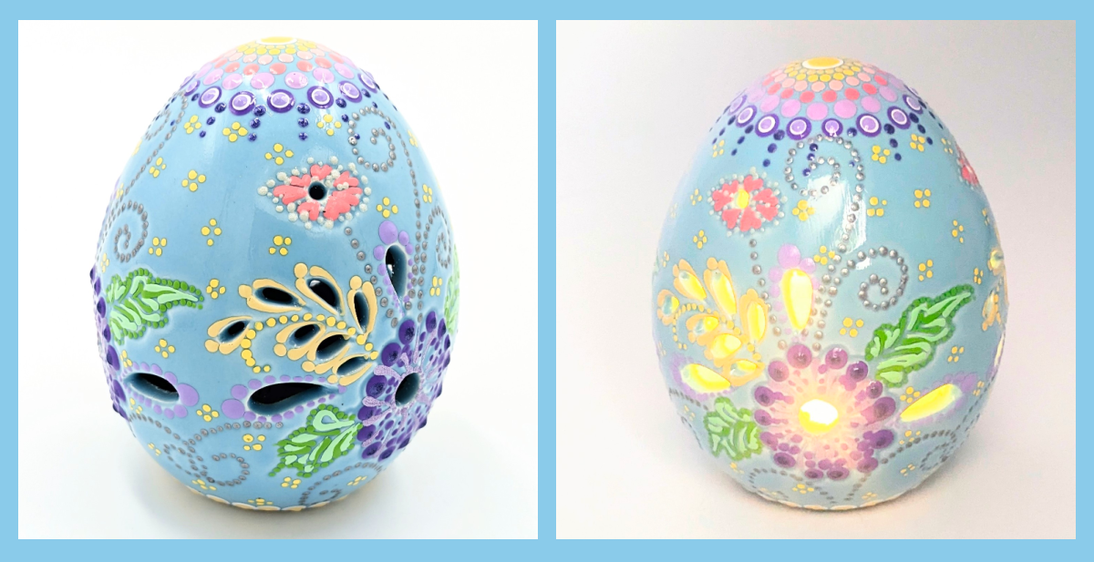 A hand-painted dot mandala LED ceramic Easter egg that delivers a gentle, color-rich glow – art you can switch on for instant atmosphere.