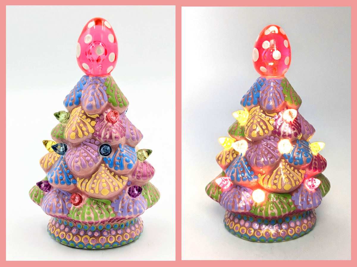 A hand-painted dot mandala LED ceramic tree that delivers a sweet Spring and Easter-themed, color-rich glow – art you can switch on for instant atmosphere.