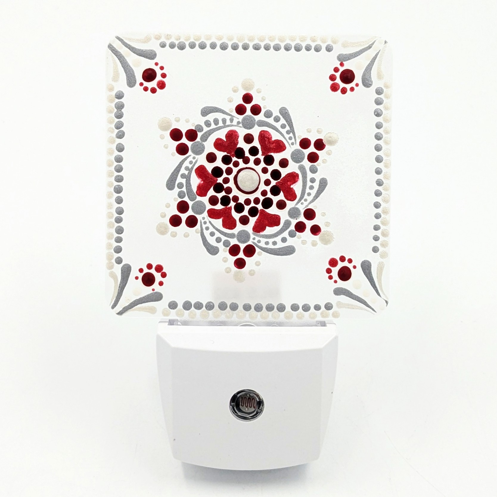 This plug?in night light features a unique dot mandala design that illuminates gently after dark. Compact and easy to position, it adds warmth and visibility without harsh brightness. Pair with an energy?efficient LED bulb to preserve the artwork and enjoy long?lasting, low?heat illumination.