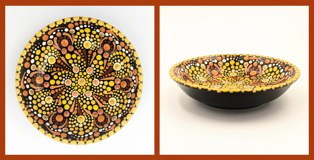 This is not just a dish, it is a little piece of art. Each one is hand-painted with intricate dot mandala designs, making it truly one-of-a-kind. Perfect for holding jewelry, keys, or cherished keepsakes, it adds beauty and personality to any space. Whether for yourself or as a thoughtful gift, this dish is the kind of item you will want to keep forever.