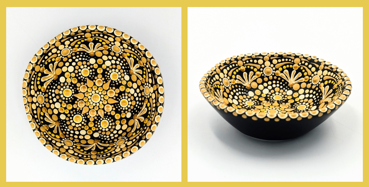 This is not just a dish, it is a little piece of art. Each one is hand-painted with intricate dot mandala designs, making it truly one-of-a-kind. Perfect for holding jewelry, keys, or cherished keepsakes, it adds beauty and personality to any space. Whether for yourself or as a thoughtful gift, this dish is the kind of item you will want to keep forever.