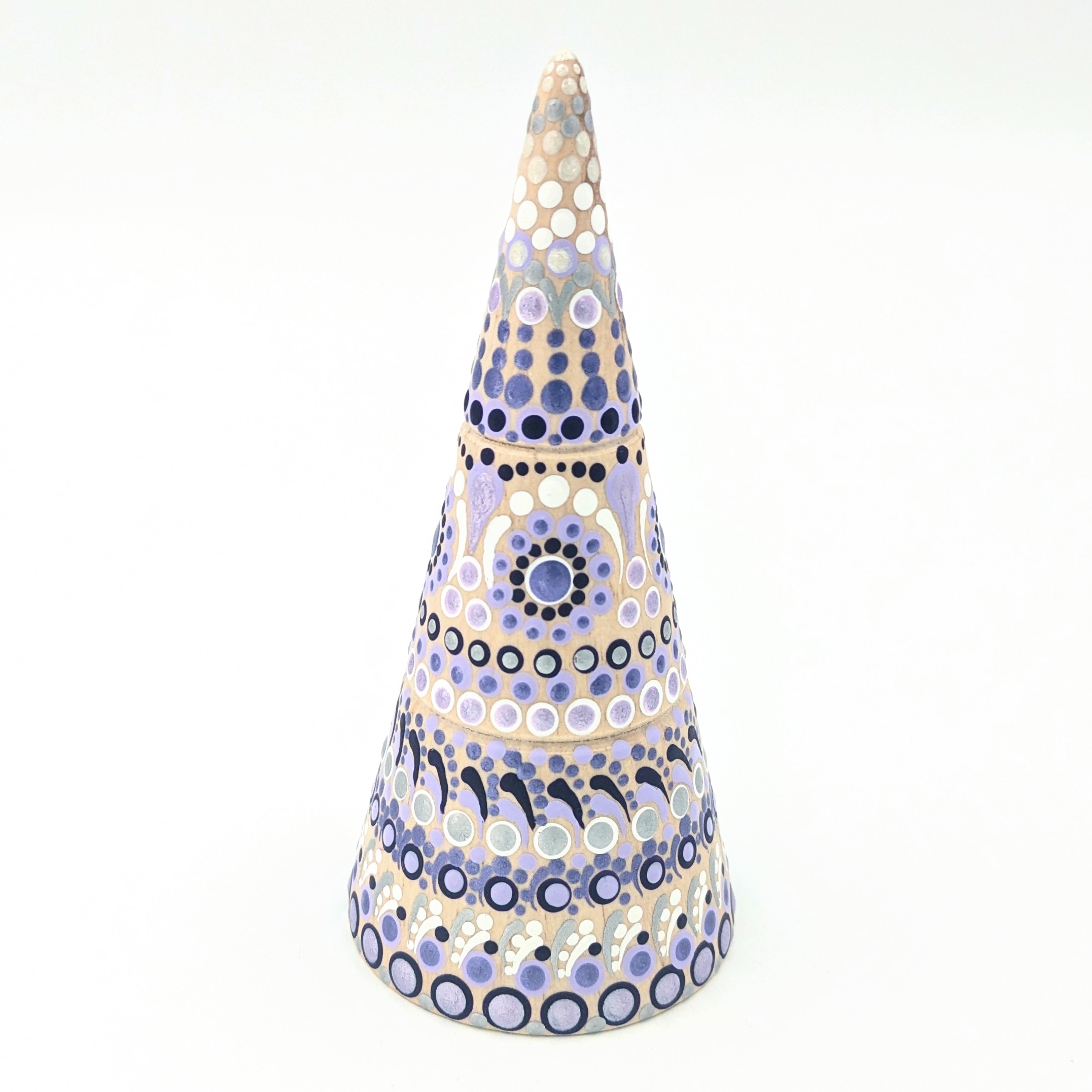 This hand-painted piece of art features an intricate pattern built from precision placed acrylic dots, creating a beautiful blend of color, texture, and symmetry. Designed to complement a wide range of seasonal and everyday decor, it brings a vibrant and unique touch to mantels, shelves, entry tables, and centerpieces. Whether inspired by the warmth of autumn, the brightness of spring, the magic of the holidays, or the simplicity of year-round accents, this piece adds harmony and visual interest to any space and works beautifully on its own or paired with coordinating decor.
