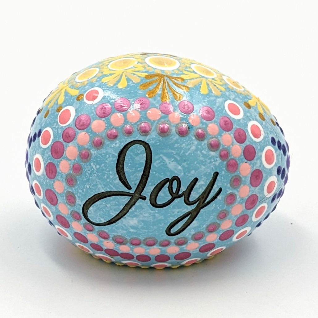 This lovingly hand-painted egg features an intricate dot mandala design, blending beautiful Spring colors with elegance. Perfect as a unique gift for art lovers or a stylish addition to any room.