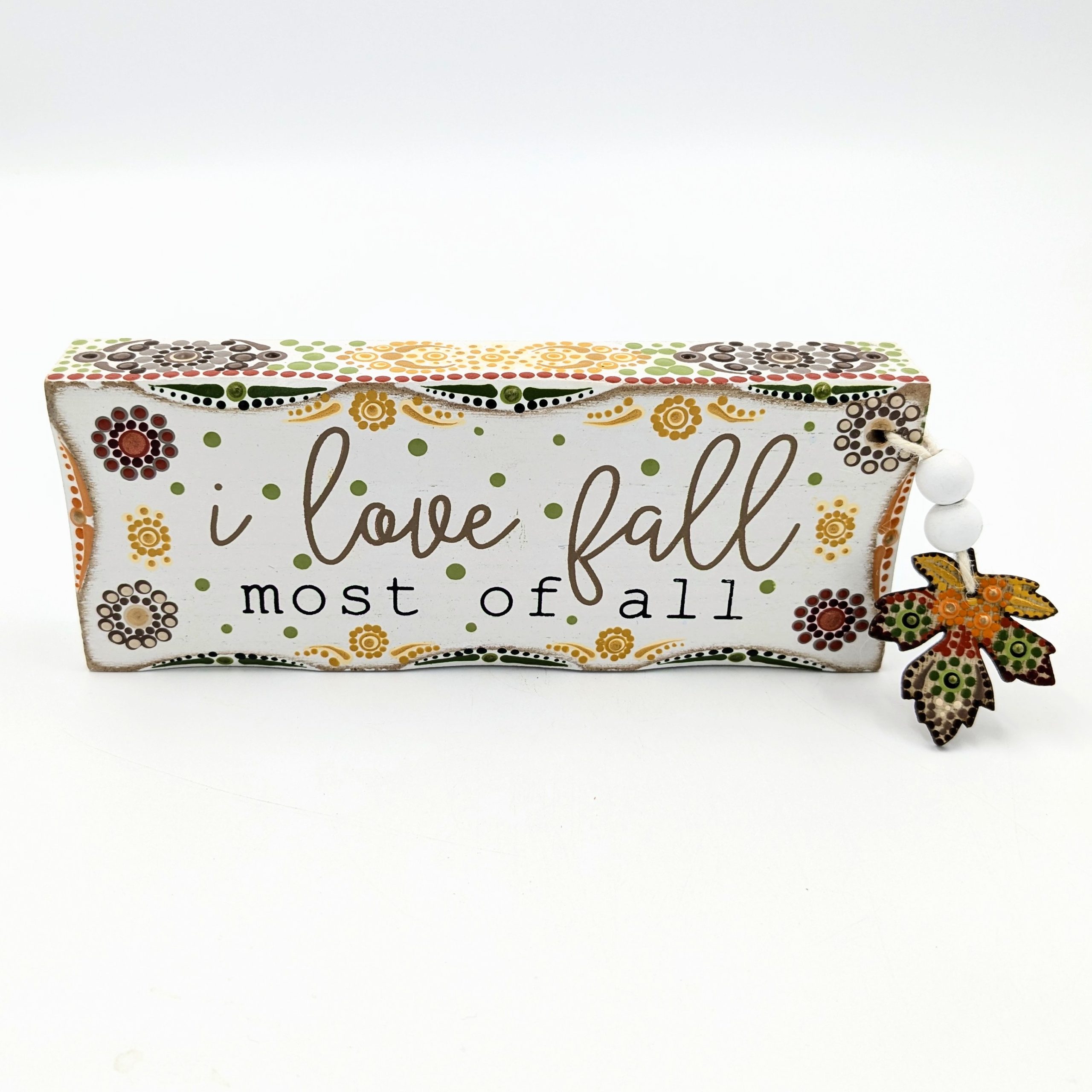 Hand-painted mandala designs gives this standing sign quiet character, making it an expressive display for this beautiful season..