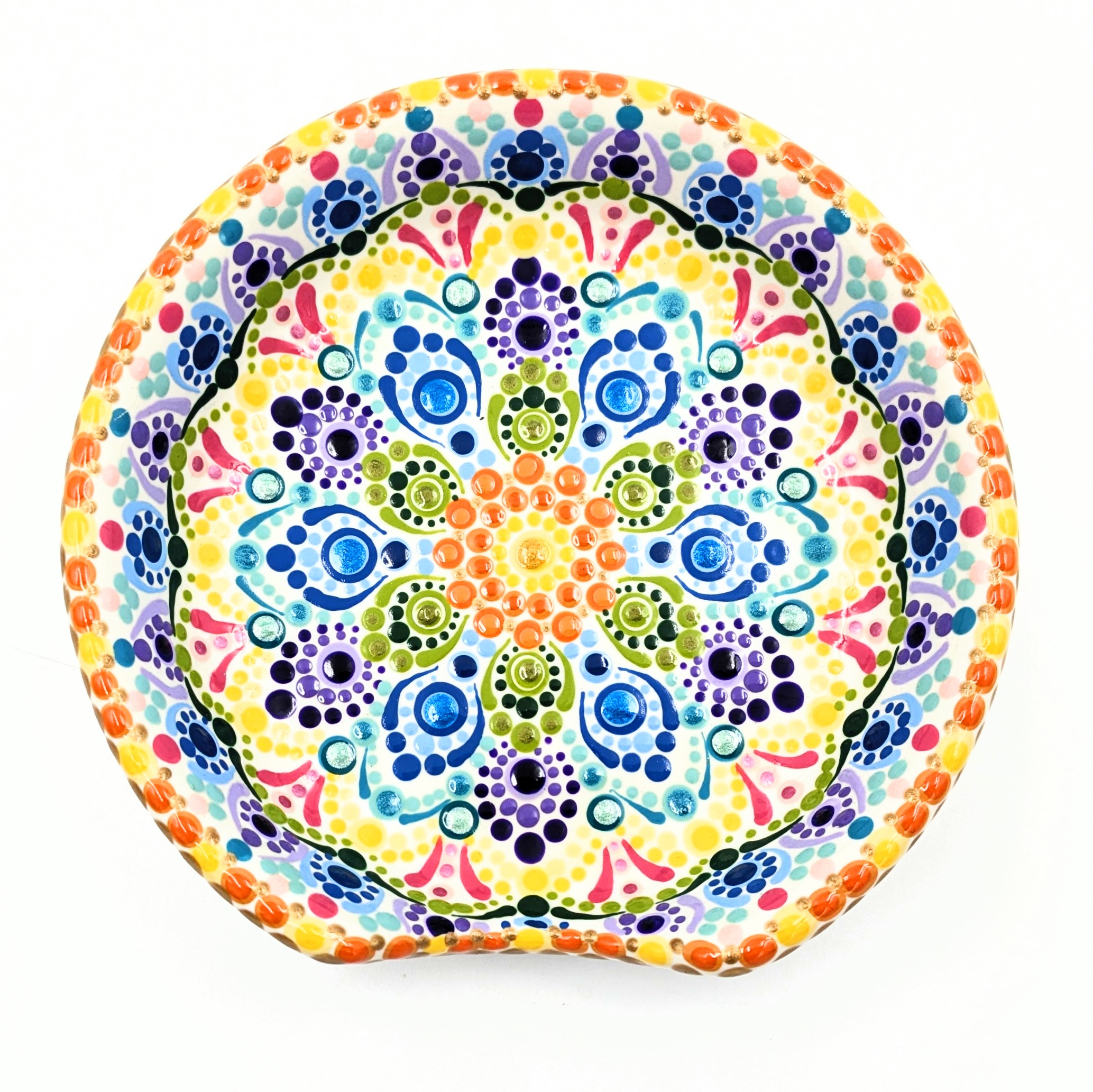 This ceramic spoon rest balances practicality and artistry through A beautifully hand-painted dot mandala design.