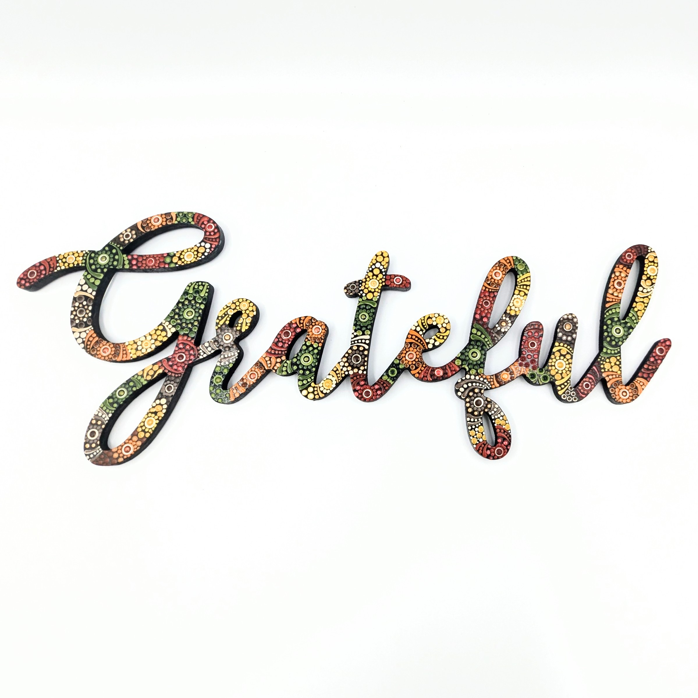 This wood wall hanging features hand-painted detailing that adds subtle texture, warm Fall colors, and handmade character to vertical spaces.