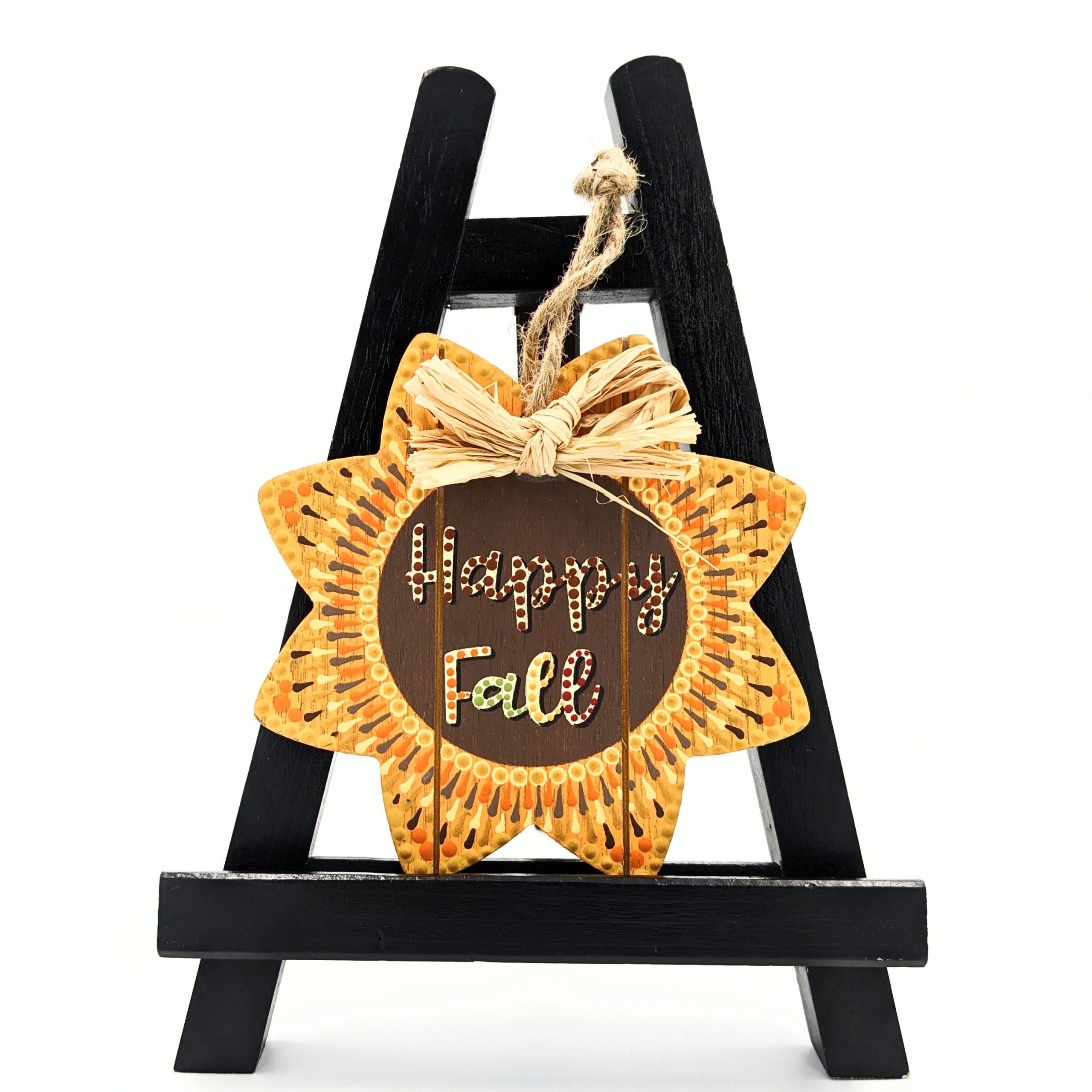 This bright little sunflower wall hanging features hand-painted dot mandala design that adds subtle texture, color, and handmade character to vertical spaces. Perfect seasonal decor to brighten up your home.